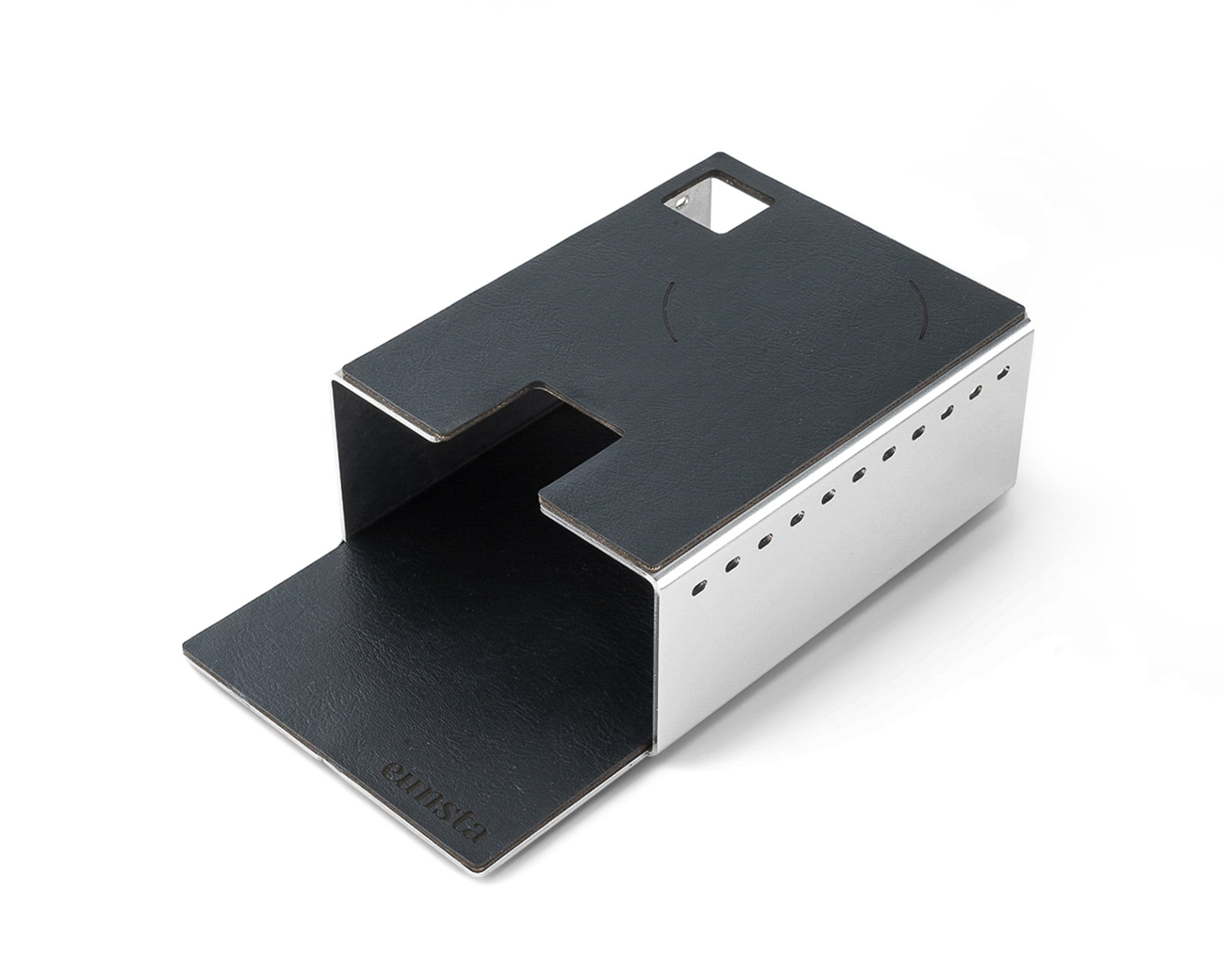 Featuring a tamping area covered with durable synthetic leather, our tampering station provides a stable and hygienic surface for achieving the perfect tamp. Additionally, it is thoughtfully designed to store essential tools such as your tamper, cleaning brush, and dosing ring, keeping everything you need within reach for a seamless espresso-making experience.