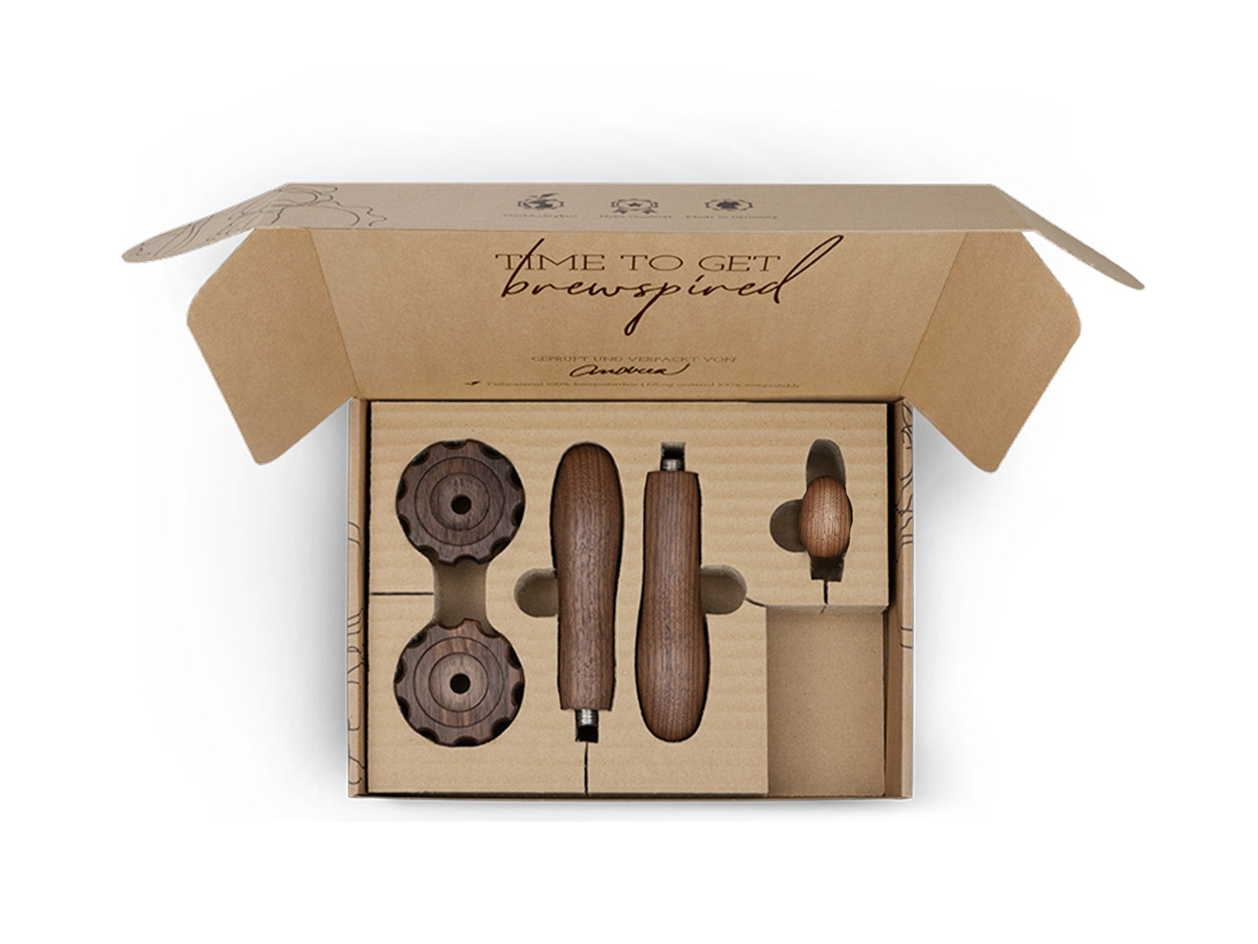 The refinement kit will upgrade your setup, carefully crafted to enhance your espresso machine with a touch of elegance. From a balanced handling to ergonomic design, this portafilter handle offers optimal performance thanks to it's internal weighting.
